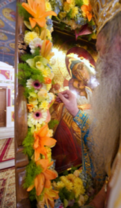 Αναφέροντας ως παράδειγμα τις εικόνες αγαπημένων προσώπων μας, τις οποίες βλέποντάς τες όλοι μας σκεπτόμαστε, εκφράζουμε την αγάπη μας και αισθανόμαστε την κοινωνία με το εικονιζόμενο πρόσωπο, υπογράμμισε με έμφαση πως «εάν αυτό συμβαίνει σε μία γήινη φωτογραφία ενός ανθρώπου, πόσο πολύ περισσότερο όταν η Ιερά Εικόνα απεικονίζει το Θείο Πρόσωπο του Κυρίου ή της Υπεραγίας Θεοτόκου ή των Θεοφόρων Αγίων». «Γι’ αυτό η Αγία μας Εκκλησία δογμάτισε ότι δια των Ιερών Εικόνων η τιμή που απονέμουμε δεν μένει στην ύλη, αλλά διαβαίνει δια της Εικόνος στο πρωτότυπο» συμπλήρωσε, τονίζοντας πως «καθώς απιθώνουμε τα σωματικά μας χείλη, ουσιαστικά απιθώνουμε επάνω – ακουμπάμε δηλαδή – την ψυχή μας».