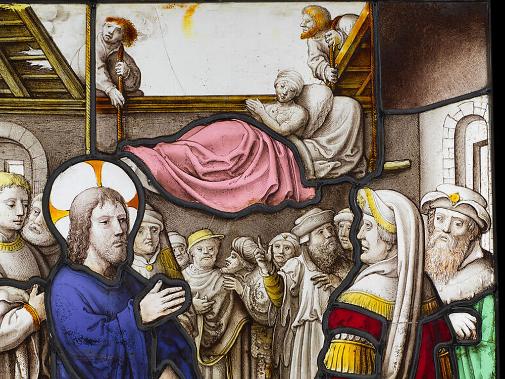 Φωτογραφία: Η θεραπεία του παραλυτικού στην Καπερναούμ (λεπτομέρεια), μέρος σειράς 12 σκηνών από τη ζωή του Χριστού, δημιουργία του Jan Rombouts, περίπου 1525-30. Υαλογράφημα, Συλλογή The Metropolitan Museum of Art (Public Domain).