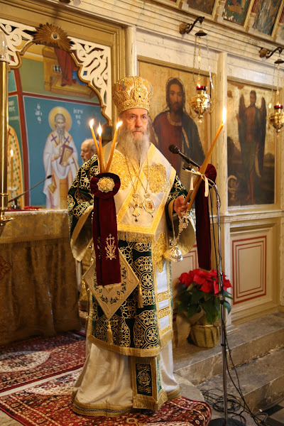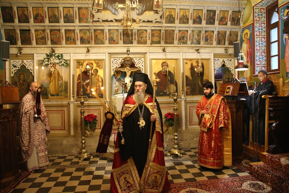 Το απόγευμα της παραμονής χοροστάτησε στον Εσπερινό των Χριστουγέννων, που τελέσθηκε με ιδιαίτερη λαμπρότητα, μαζί με την Λιτή της εορτής, σύμφωνα με το μοναστηριακό τυπικό, και με Αρτοκλασία.