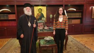 Τέλος, η Πρέσβης και το επιτελείο που την συνόδευε ξεναγήθηκαν στο Πατριαρχικό Μέγαρο και στο αρχαιολογικό μουσείο.