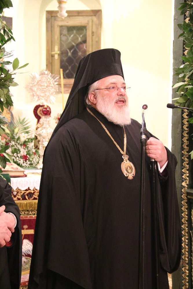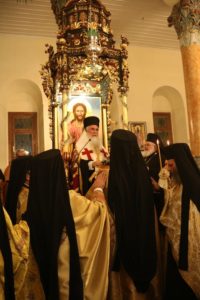 Το πρωί της επομένης της Ευχαριστιακής Συνάξεως προέστη ο φιλοξενούμενος Σεβ. Μητροπολίτης Λήμνου κ. Ιερόθεος, συλλειτουργούντος του οικείου Μητροπολίτου κ. Δαμασκηνού, και επίκαιρα μίλησε «εν πληθούση εκκλησία» ο Αρχιμ. Ιερώνυμος Σχίζας, Γενικός Αρχιερατικός Επίτροπος της Ιεράς Μητροπόλεως Λήμνου.