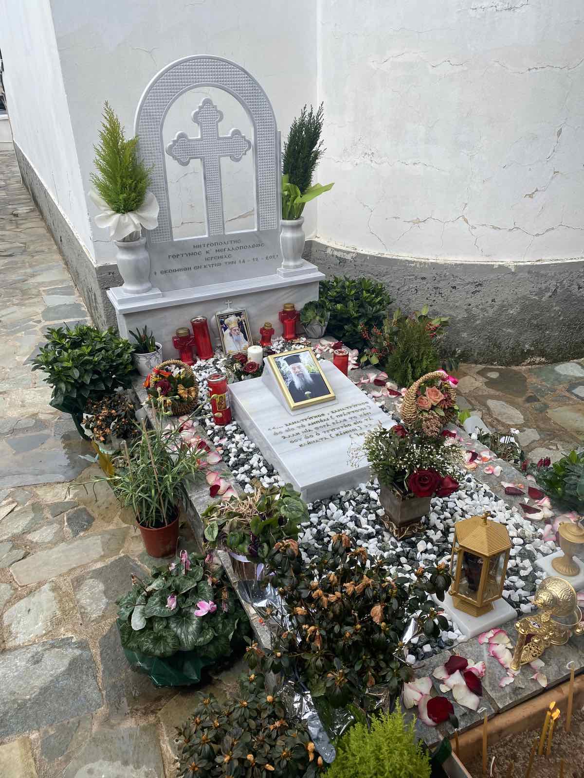 Σκοπός της επισκέψεως ήταν να ασπασθεί το μνήμα του μακαριστού Μητροπολίτου Γόρτυνος και Μεγαλοπόλεως κυρού Ιερεμία και να τελέσει νεκρώσιμο αρχιερατικό τρισάγιο υπέρ αιωνίου μνήμης και μακαρίας αναπαύσεως της ψυχής του μακαριστού Ιεράρχου.