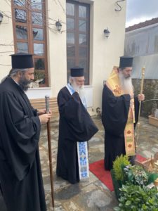 Τον Σεβασμιώτατο υποδέχθηκε εγκαρδίως ο Πρωτοσύγκελλος της Μητροπόλεως, Αρχιμ. π. Ιάκωβος Κανάκης, ενώ ο κ. Συμεών τέλεσε το τρισάγιο ενδυόμενος αρχιερατικά άμφια του μακαριστού Ιεράρχου, τον οποίο ο κ. Συμεών ιδιαίτερα σεβόταν και εκτιμούσε.