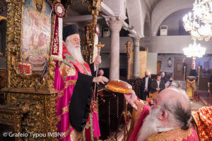 Ἄς ἐπικαλούμεθα πάντοτε τή βοήθεια τοῦ ἁγίου Γεωργίου καί ἄς τόν παρακαλοῦμε νά μᾶς ἐνισχύει στόν ἀγώνα μας, ἰδιαίτερα αὐτή τήν περίοδο πού εἶναι τόσο δύσκολη γιά ὅλους μας, γιά τούς ἰατρούς, γιά τούς νοσηλευτές, γιά τούς ἀσθενεῖς, ἀλλά καί γιά ὅλους ἐμᾶς πού ἔχει ἀλλάξει ἡ ζωή μας. Καθημερινά βλέπουμε ἄλλα θέλουμε νά κάνουμε καί ἀλλιῶς τά κάνουμε, γιατί ὑπάρχει ὁ φόβος, ὑπάρχουν οἱ ἐντολές, ὑπάρχουν ὅλα αὐτά τά ὁποῖα πρέπει νά σεβαστοῦμε γιά νά μήν ἐπιδεινωθεῖ ἡ κατάσταση. Γι᾽ αὐτό ἄς ἐπικαλούμεθα τή χάρη ὅλων τῶν ἁγίων καί ἰδιαιτέρως τοῦ ἁγίου Γεωργίου, ὁ ὁποῖος, ὅπως σᾶς εἶπα, ἐπεμβαίνει τάχιστα, προκειμένου νά ἱκανοποιήσει τά αἰτήματά μας, ὅταν εἶναι μάλιστα γιά τή σωτηρία ἰδιαίτερα τῆς ψυχῆς μας ἀλλά καί τοῦ σώματός μας. Ἀμήν.