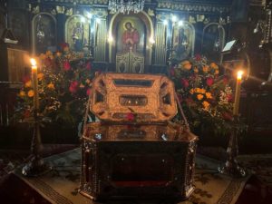 Το ιερό Λείψανο, που φυλάσσεται στην ενορία του Ιερού Ναού Αγίου Νικολάου Καρποχωρίου, κόμισε ο Πανοσιολογιώτατος Αρχιμανδρίτης π. Αμφιλόχιος Παπανδρέου, Πρωτοσύγκελλος της Ιεράς Μητροπόλεως Θεσσαλιώτιδος, ο οποίος και τέλεσε την ακολουθία του Εσπερινού.