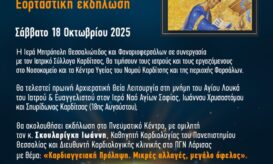Την Πέμπτη 16 Οκτωβρίου 2025 το πρωί, ο Σεβασμιώτατος Μητροπολίτης Τρίκκης, Γαρδικίου και Πύλης κ. Χρυσόστομος χοροστάτησε στην πανηγυρική...