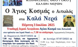 “Ο Άγιος Κοσμάς ο Αιτωλός στα Καλά Νερά” – Υποδοχή Ιερού Λειψάνου