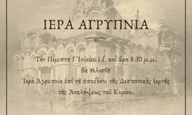 Αγρυπνία για την Απόδοση της Αναλήψεως θα τελεσθεί στη Θεσσαλονίκη, σύμφωνα με το ακόλουθο Πρόγραμμα: