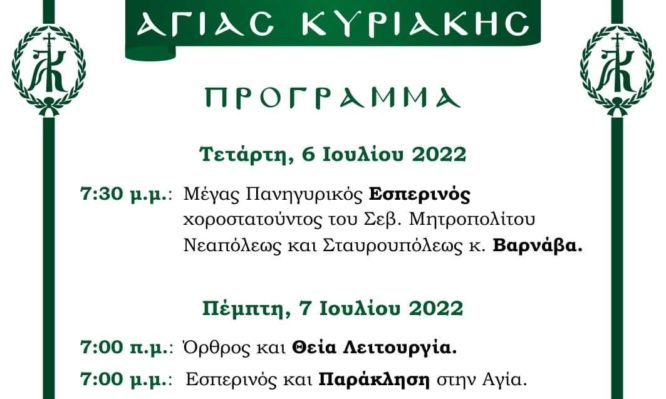 Σήμερα 07 Ιουλίου εορτάζει η Αγία Κυριακή