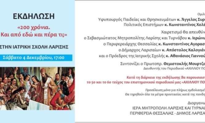 30 Νοεμβρίου 2021 15:47 Μητρόπολη Λαρίσης: Αναβολή εσπερίδας λόγο πανδημίας Η Μητρόπολη Λαρίσης ανακοίνωσε ότι αναβάλλεται η επιστημονική εσπερίδα στην Ιατρική Σχολή για τη Συμπλήρωση Των 200 Ετών Από...