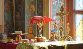 Όλα είναι εδώ, πάνω στην αγία Τράπεζα, έτοιμα για τη μετουσίωση. Όλος ο κόσμος ετοιμάζεται για την κάθοδο του... -