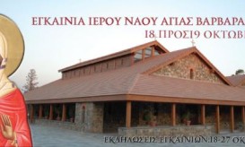 Στις 18 Οκτωβρίου τα εγκαίνια του Ι.Ν.Αγίας Βαρβάρας