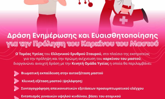 Ο Ελληνικός Ερυθρός Σταυρός προγραμματίζει δράση για την Πρόληψη και Πρώιμη Ανίχνευση του Καρκίνου του Μαστού στο Δήμο Πειραιά