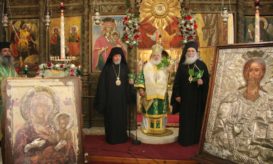 Την ιερά εικόνα υπεδέχθη στον Ιερό Ναό Κοιμήσεως Θεοτόκου στο Καζαλάκ ο οικείος Μητροπολίτης κ. Κυπριανός, πλαισιούμενος από τον... -