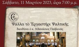 Καλούνται οι Πιστοί να παρακολουθήσουν την Συναυλία Βυζαντινής Μουσικής, που θα αποδώσει Εκκλησιαστικούς ύμνους εν μέσω της Μεγάλης Τεσσαρακοστής,... -