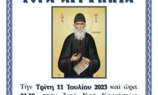 Αγρυπνία στη Μύρινα για τον Άγιο Παΐσιο -