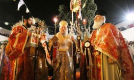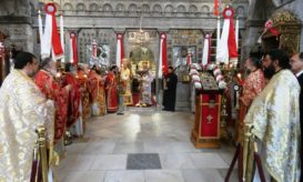 Προ της Απολύσεως οι Αρχιερείς, ο ιερός κλήρος και οι πιστοί, μετέβησαν εν πομπή στην αίθουσα του θρόνου, όπου... -
