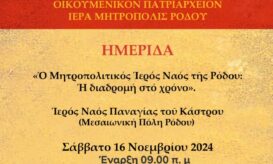 Ἡ Ἱερά Μητρόπολις Ρόδου σᾶς προσκαλεῖ στήν Ἡμερίδα μέ θέμα: «Ὁ Μητροπολιτικός Ἱερός Ναός τῆς Ρόδου: Ἡ διαδρομή στό χρόνο»,... -