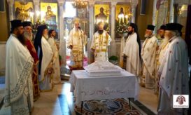 Την κυριώνυμη ημέρα της εορτής τελέσθηκαν ο Όρθρος, η ευλόγηση των άρτων και η πανηγυρική Αρχιερατική Θεία Λειτουργία προεξάρχοντος... -