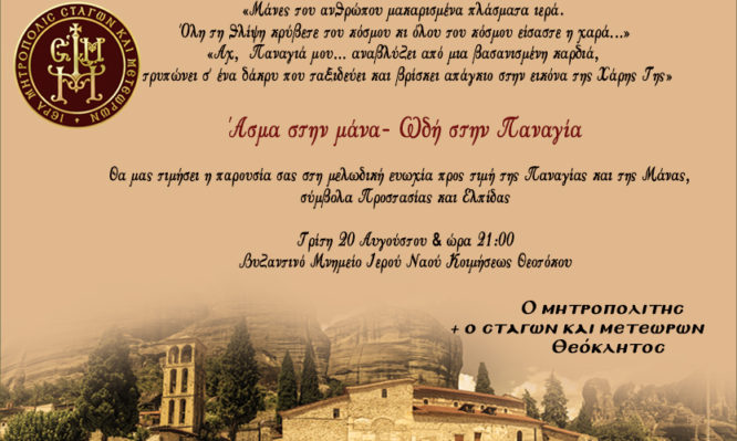 Το Σάββατο 20 Μαΐου και ώρα 7:00 μ.μ. θα τελεσθεί ο Μέγας Πανηγυρικός Εσπερινός μετά Αρτοκλασίας και Θείου Κηρύγματος, χοροστατούντος του Σεβ. Μητροπολίτου Σταγών και... -