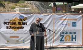Τον Μητροπολίτη πλαισίωναν ο Πρωτοπρεσβύτερος Μιχαήλ Ευθυμίου και ο Αρχιδιάκονος Ραφαήλ Μισιαούλης. -