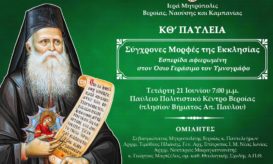 Στην εκδήλωση θα ομιλήσει ο Σεβασμιώτατος Μητροπολίτης Βεροίας, Ναούσης και Καμπανίας κ. Παντελεήμων, ο Γενικός Αρχιερατικός Επίτροπος της Ιεράς... -