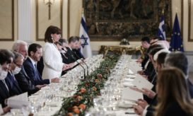 Επίσημο δείπνο είχε η Κατερίνα Σακελλαροπούλου με τον Πρόεδρο του Κράτους του Ισραήλ, Isaac Herzog, στο Προεδρικό Μέγαρο, σήμερα... -