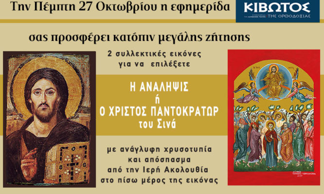 22 Οκτωβρίου 2022 18:24 Την Πέμπτη, 27 Οκτωβρίου, κυκλοφορεί το νέο φύλλο της Εφημερίδας «Κιβωτός της Ορθοδοξίας» Οι Προσφορές της εφημερίδας ΚΙΒΩΤΟΣ ΤΗΣ ΟΡΘΟΔΟΞΙΑΣ, την Πέμπτη, 27 Οκτωβρίου 2022