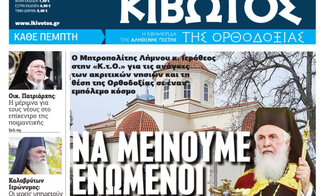 Την Πέμπτη, 11 Σεπτεμβρίου, κυκλοφορεί το νέο φύλλο της Εφημερίδας «Κιβωτός της Ορθοδοξίας» – Όλες οι Προσφορές
