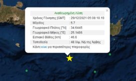 Ο σεισμός έγινε στις 7.08 το πρωί και είχε εστιακό βάθος 46,6 χιλιόμετρα. -