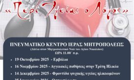 Κύκλος Εκλαϊκευμένων Ομιλιών με Θέμα την Υγεία «Περί Υγείας ο Λόγος» στην Αλεξανδρούπολη