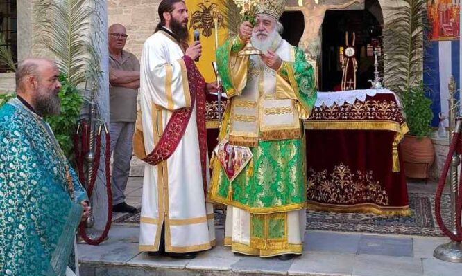 Αρχιερατική Θεία Λειτουργία σε μεταβυζαντινό ναό στη Σάμο