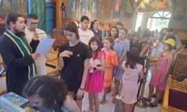 Ο εφημέριος του ως είρηται Ναού, αιδεσιμολ. Σταυρ. Οικονόμος π. Γεώργιος Καρδάσης, αφού υποδέχθηκε εγκαρδίως τα παιδιά και τους... -