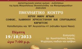 Το απόγευμα του Σαββάτου 11 Οκτωβρίου 2025 και μετά τον Εσπερινό, πραγματοποιήθηκε στο Πνευματικό Κέντρο του Ιερού Ναού Αγίων... -