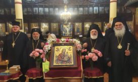 Την ιερά εικόνα υπεδέχθη στον Ιερό Ναό Κοιμήσεως Θεοτόκου στο Καζαλάκ ο οικείος Μητροπολίτης κ. Κυπριανός, πλαισιούμενος από τον... -