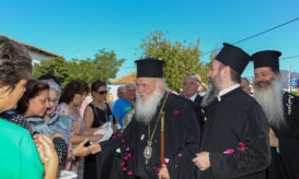 Ο Αρχιεπίσκοπος Ιερώνυμος στην ολοκλήρωσε την επίσκεψή του στις πυρόπληκτες περιοχές της Β. Εύβοιας και επέστρεψε στην Αρκίτσα. -