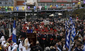 Στην καρδιά της Λαμίας, στην Πλατεία Πάρκου, Αρχιερείς, ιερείς, μοναχοί και μοναχές, οι πολιτικοί, στρατιωτικοί και εκπαιδευτικοί άρχοντες του... -