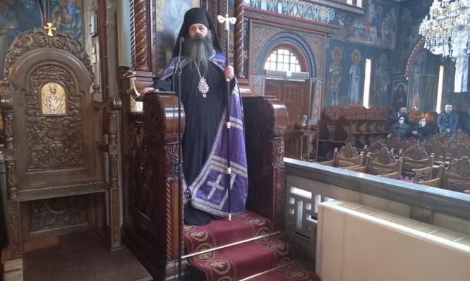 Ο Σεβ. Μητροπολίτης, ερμηνεύοντας το «Νυν αι δυνάμεις των ουρανών», ύμνο που ψάλλεται αντί Χερουβικού κατά τη διάρκεια της... -