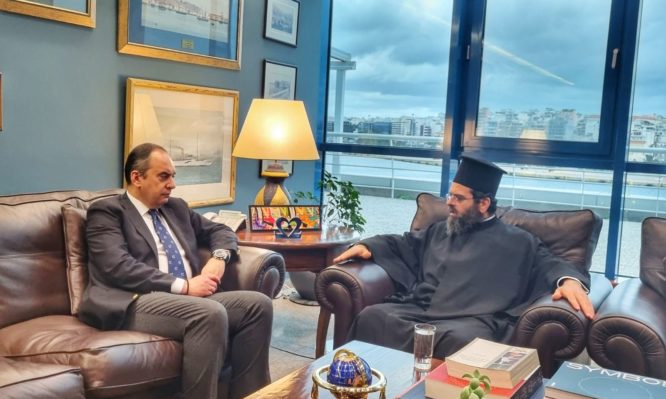 Ὁ Σεβασμιώτατος δε, τοῦ εὐχήθηκε ὑγεία, τὸν ἄνωθεν φωτισμό, δύναμη καὶ ἐνίσχυση στὴν ἐπιτέλεση τῶν ὑψηλῶν καθήκοντων του. -