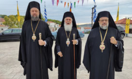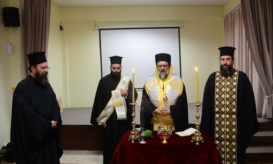 Τον Μητροπολίτη πλαισίωσαν ο εφημέριος του Ναού Πρωτοπρεσβύτερος Γεώργιος Κωνσταντόπουλος και ο Διάκονος Θεόφιλος Κυριάκος. -