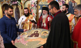 Στη συνέχεια, ο Σεβασμιώτατος κ.Βαρνάβας, πλαισιούμενος από τους κληρικούς, υποδέχθηκε στον αύλειο χώρο του Ιερού Ναού την άρα του Αγίου... -