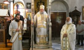 Στο τέλος της Θείας Λειτουργίας ο Σεβασμιώτατος απηύθυνε ευχές προς το πολυπληθές εκκλησίασμα και ιδιαιτέρως στον εορτάζοντα π. Δωρόθεο... -