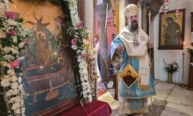 Την κυριώνυμο ημέρα της εορτής ο Μητροπολίτης Θήρας χοροστάτησε της ακολουθίας του όρθρου και προεξήρχε της πανηγυρικής Θείας Λειτουργίας.