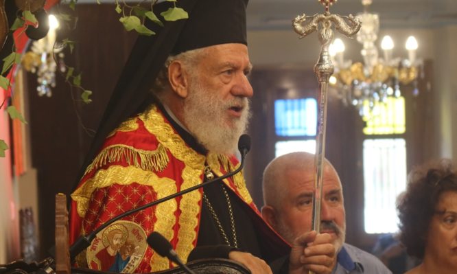Ο Σύρου Δωρόθεος στον πάλαι ποτέ Μητροπολιτικό Ναό της Αγίας Ελένης Κάστρου Μυκόνου