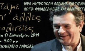 18 Σεπτεμβρίου 2019 11:27 Οι Λαρισαίοι τίμησαν τις «άλλες πολιτείες» του Σταμάτη Σπανουδάκη Στο Κηποθέατρο Λαρίσης, την Τρίτη 17 Σεπτεμβρίου 2019 και ώρα 21.00΄ μ.μ, η Ιερά Μητρόπολη Λαρίσης και Τυρνάβου, με...