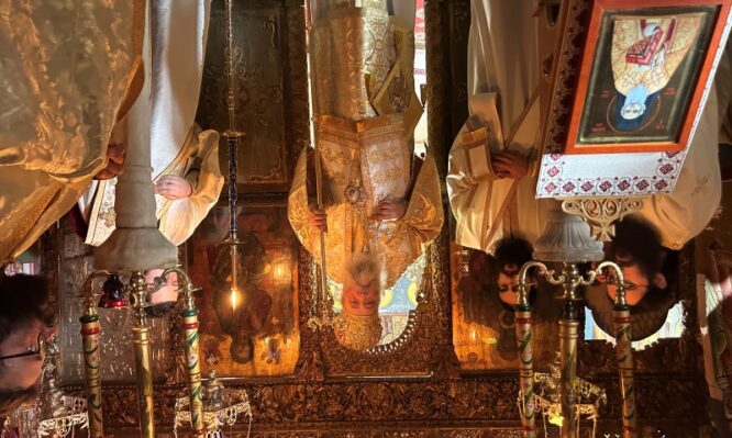 Προ της Απολύσεως προέβη στην «Χειροθεσία Εις Πνευματικόν» του οικείου Εφημερίου, Πρωτοπρ. Δημητρίου Φερεντίνου. -