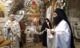 Τήν Πατριαρχικήν καί Ἀρχιερατικήν συνοδείαν καί τό εὐσεβές ἐκκλησίασμα ἐδεξιώθη ὁ ἐπιμελῶς συντηρῶν τήν Μονήν μοναχός π. Χαρίτων. -