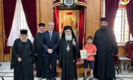 Ὁ Μακαριώτατος ἐδέχθη καί ηὐλόγησε τούτους, ηὐχήθη εἰς αὑτούς πρόοδον, ἐπιτυ-χίαν καί χριστιανικήν Παιδείαν καί κατευόδωσεν αὐτούς πρός προσκύνησιν τοῦ Παναγίου καί Ζωοδόχου Τάφου καί τοῦ Πανσέπτου Θεομητορικοῦ Μνήματος. -