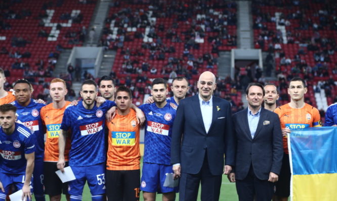 10 Απριλίου 2022 18:47 Ολυμπιακός: «Όλα τα έσοδα από το φιλικό με τη Σαχτάρ για παροχή ανθρωπιστικής βοήθειας» Οι Πειραιώτες έδωσαν το βράδυ του Σαββάτου (9/4) έναν “αγώνα για την Ειρήνη” στο “Γ. Καραίσκάκης” με αντίπαλο την...