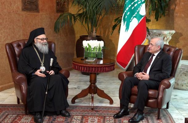 17 Απριλίου 2013 21:37 Ο Πατριάρχης Αντιοχείας στον Πρόεδρο του Λιβάνου Συνάντηση με τον Πρόεδρο του Λιβάνου Μισέλ Σουλεϊμάν είχε ο Πατριάρχης Αντιοχείας κ. Ιωάννης, επικεφαλής αντιπροσωπείας Ιεραρχών του Πατριαρχείου.